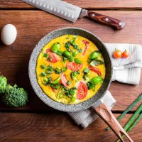 - Dve različno veliki ponvi in ponev za palačinke omogočata pripravo več različnih jedi hkrati