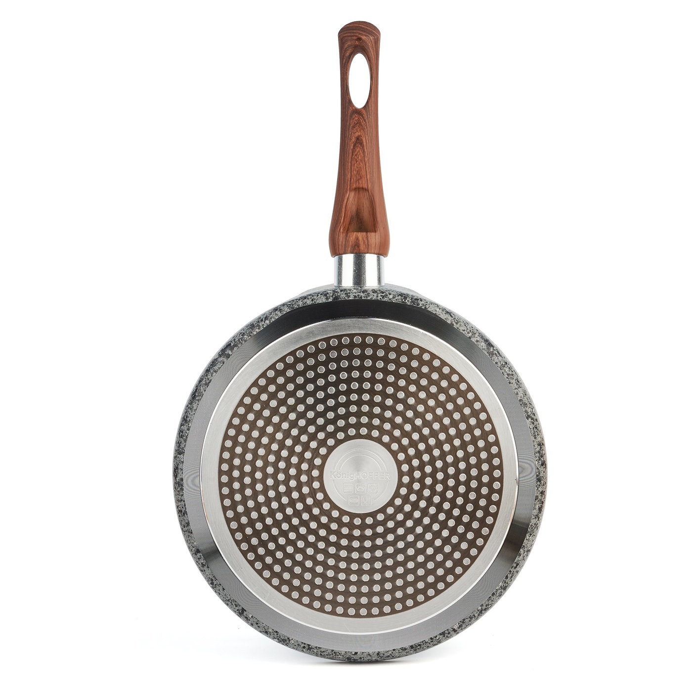 Komplet treh granitnih posod Konighoffer je sestavljen iz dveh klasičnih ponev s premerom 20 in 24 cm in ponve za palačinke z nizkim robom. Takšne jedi v opremi vaše kuhinje ustvarjajo veliko večje možnosti za pripravo različnih jedi hkrati .